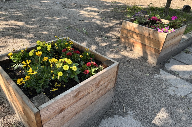 - Vi prioriterer udeliv højt og bruger vores legeplads meget. Børnene leger i sandkassen, cykler, smager på ribsene, gynger, spiller bold og meget mere. Vi har båldag en gang ugentlig, hvor vi af og til laver noget spiseligt, f.eks. popcorn. Endvidere bruger vi vores nærmiljø, går ture til stranden eller legepladsen Lykkegården eller tager længere busture til f.eks. Mindelunden, Aarhus m.m. Grupperne har hver en turdag i løbet af ugen