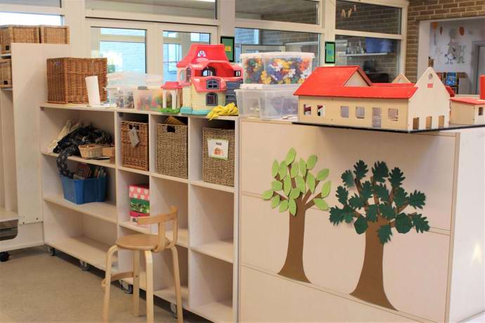 Hver vuggestuegruppe har en stue med faste voksne, som skaber en tryg ramme om dagligdagen. I børnehaven er børnene tilknyttet en fast gruppe med faste voksne; børnene bruger dog alle rum.