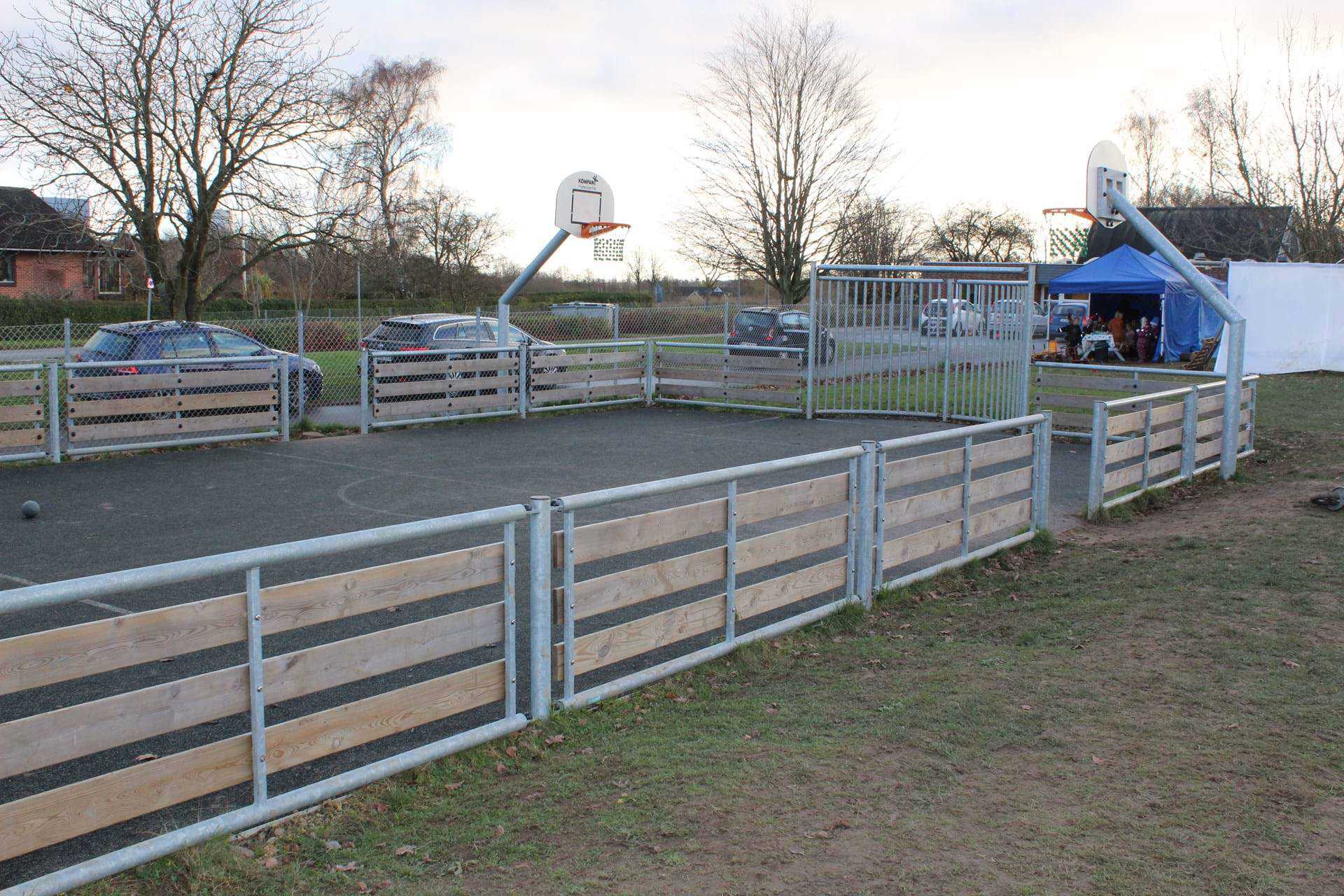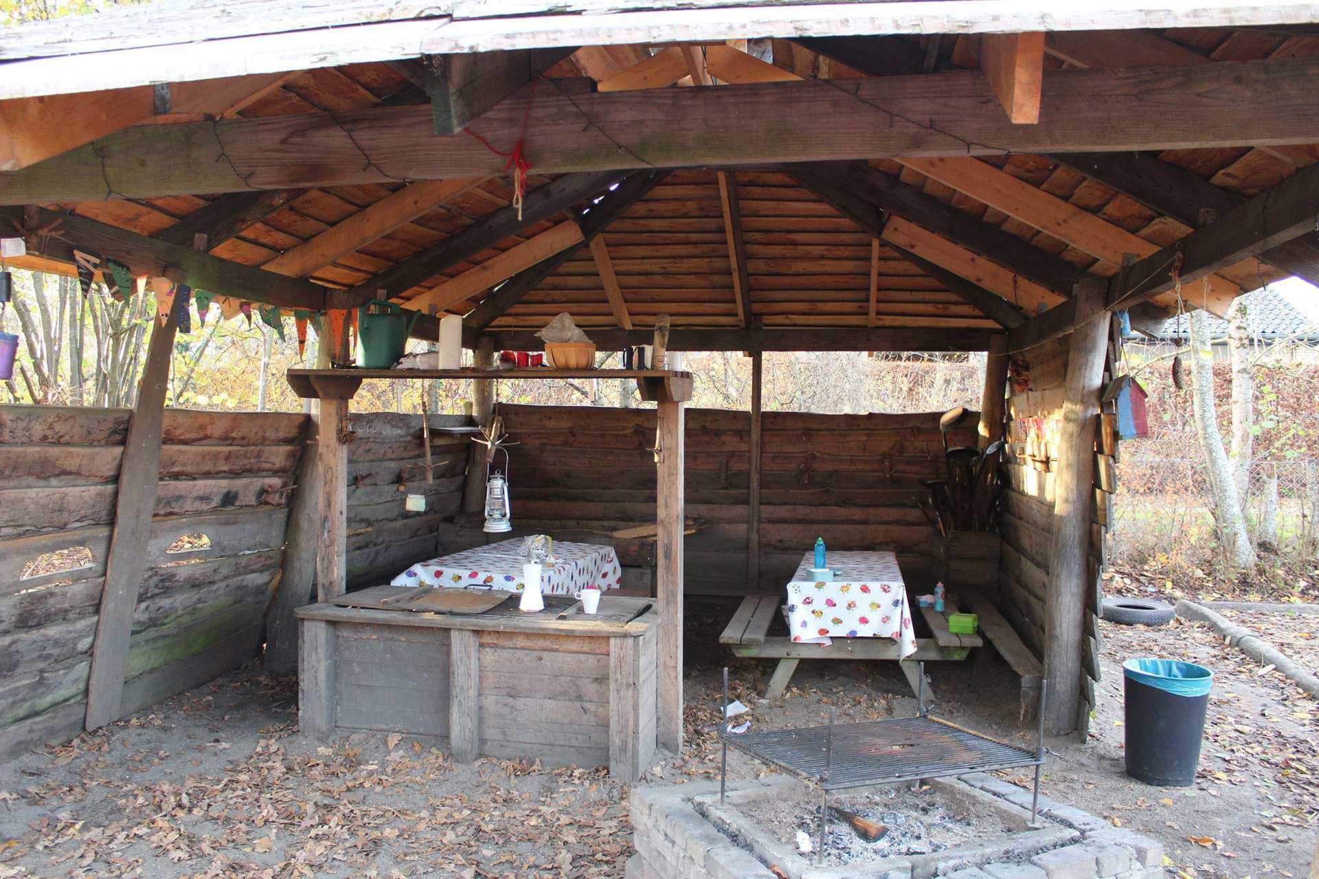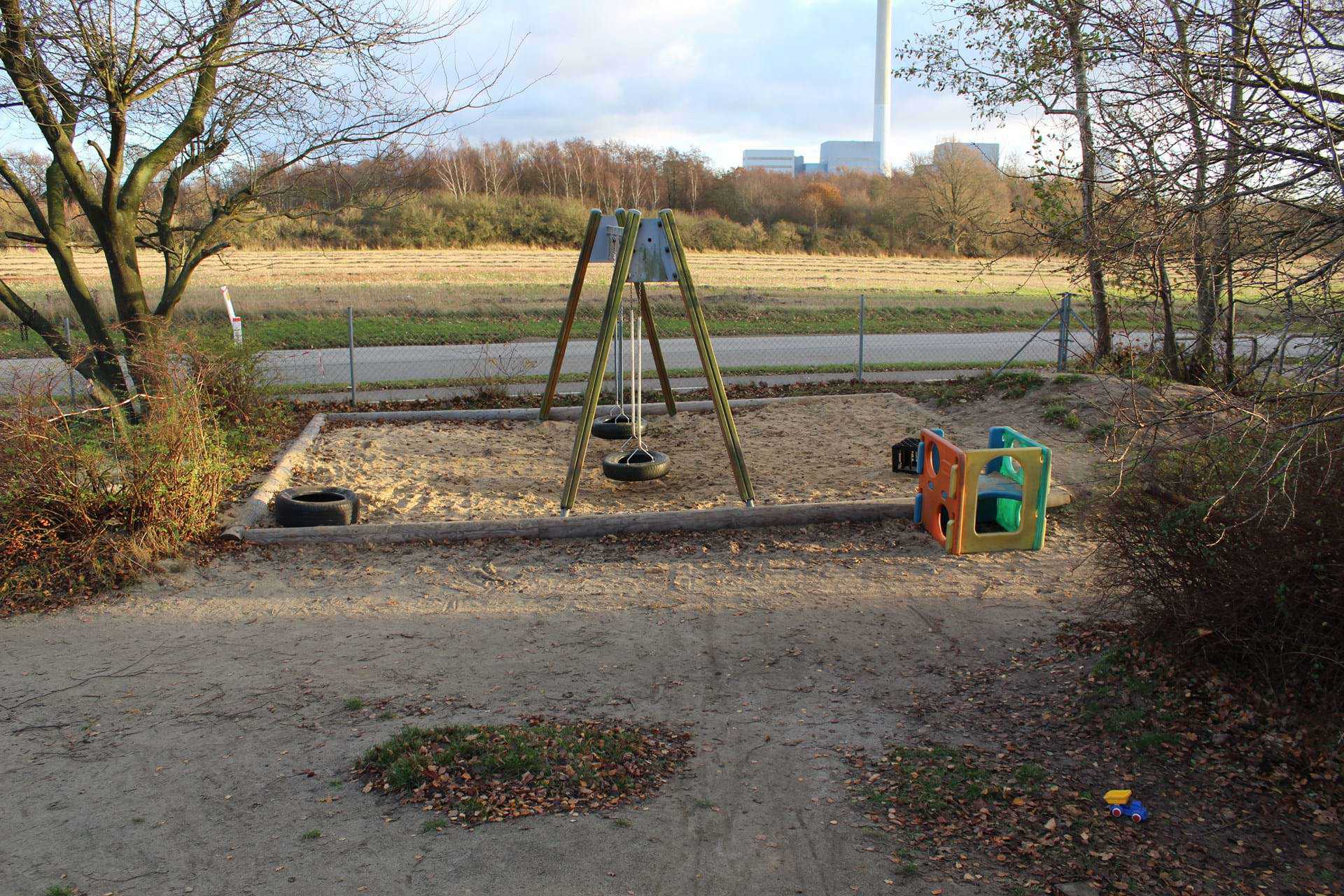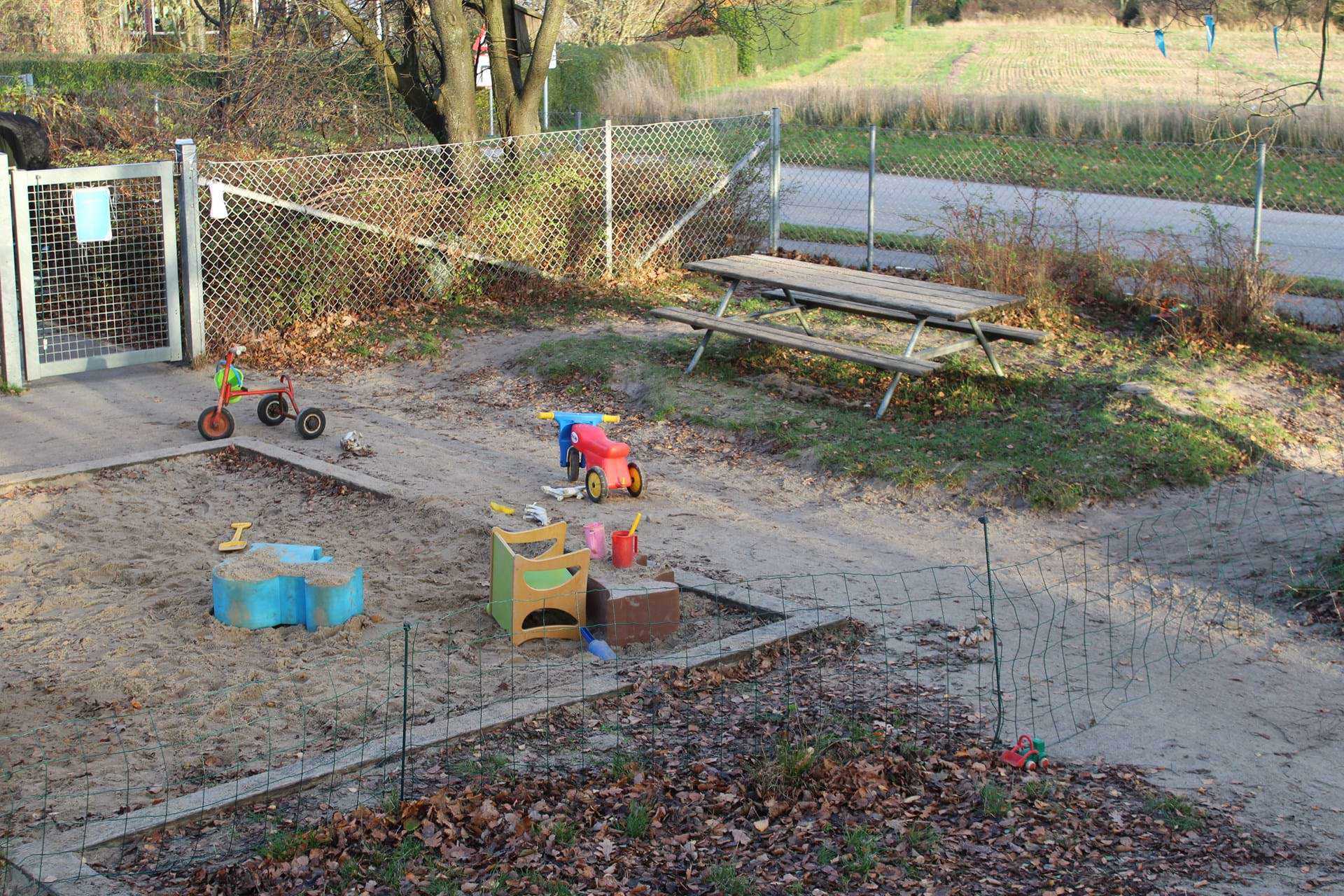 Vi har en stor legeplads med alsidige legemuligheder.