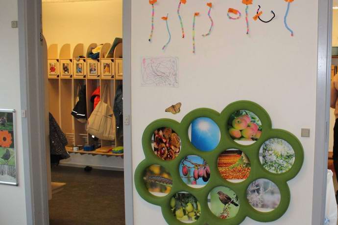 Kl. 16.00 - 17.00: Vi samles på grøn stue, eller på en af legepladserne, hvor der bliver serveret lidt brød og vand, inden de sidste børn går hjem