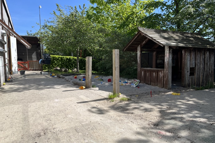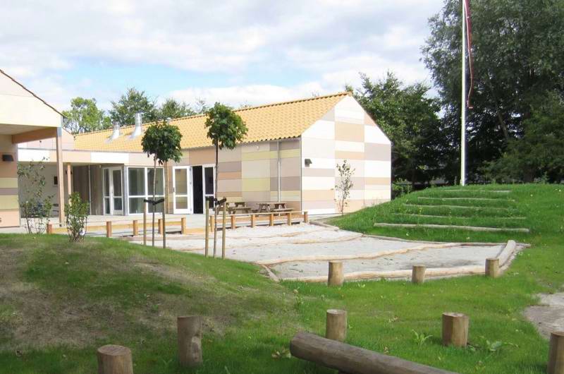 Vi bor tæt på skov og strand, og vi prioriterer at bruge vores nærmiljø. Vi vægter udeliv højt og har en stor legeplads med græshøje, bålplads, et stort sandmiljø og mange muligheder for leg, bevægelse og sansemæssige oplevelser
